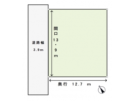 | 地目 | 宅地 | 現況 | 建物あり(更地渡し) | 間口 | 13.09 m |
