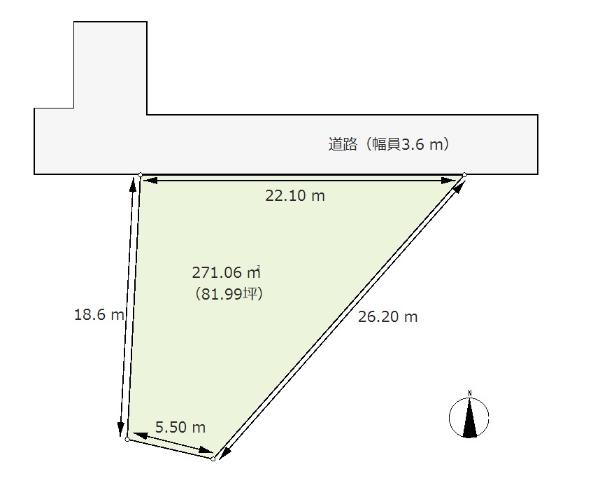 | 価格 | 4,900,000 円 | 土地面積 | 271.06 m²(81.99坪) | 坪単価 | 5.97 万円 |