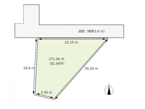 | 地目 | 宅地 | 現況 | 宅地 | 間口 | 22.13 m |