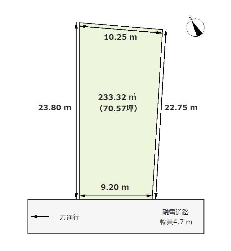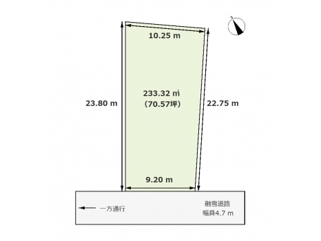 | 価格 | 9,800,000 円 | 土地面積 | 233.32 m²(70.57坪) | 坪単価 | 13.88 万円 |
