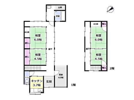 | 築年月 | 昭和41年 3月 | 土地面積 | 119.00 m²(35.99坪) | 床面積 | 1階59.28㎡ 2階29.77㎡ 計89.05㎡(26.93坪) |