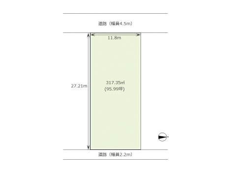 | 取引態様 | 媒介 | 接道 | 西側:幅員4.5mの公道に11.8m接する。 東側:幅員2.2mの公道に11.8m接する。 |