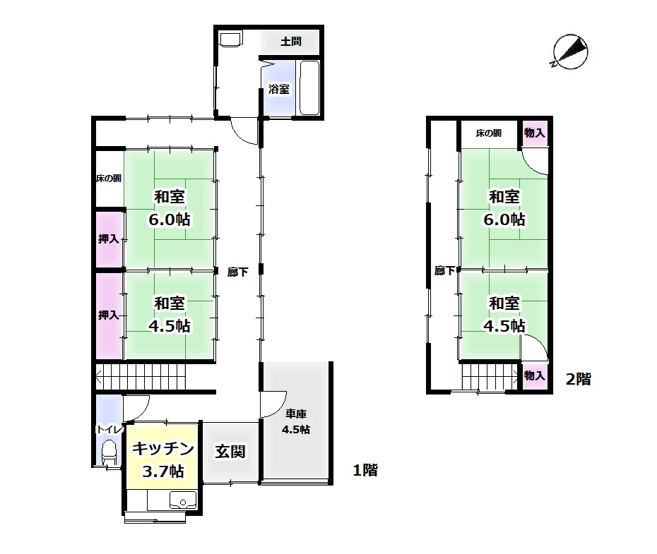 | 築年月 | 昭和41年 3月 | 土地面積 | 119.00 m²(35.99坪) | 床面積 | 1階59.28㎡ 2階29.77㎡ 計89.05㎡(26.93坪) |