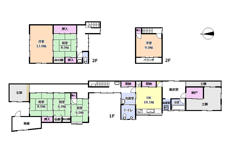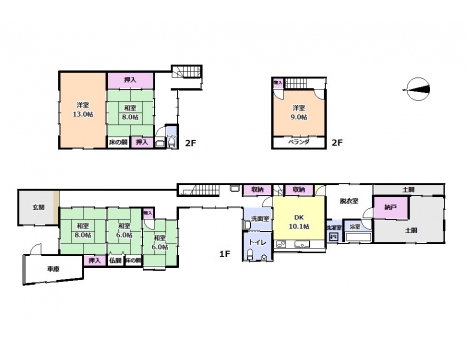 | 備考 | お手洗い洗面所が2つずつ 6DK戸建て 車庫付き 前面道路も融雪ありで雪の日も安心です。 ■2台駐車可(車庫軽1台,家屋裏1台) ■石油給湯器使用 |