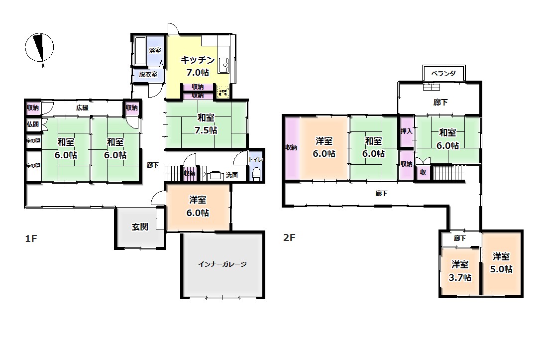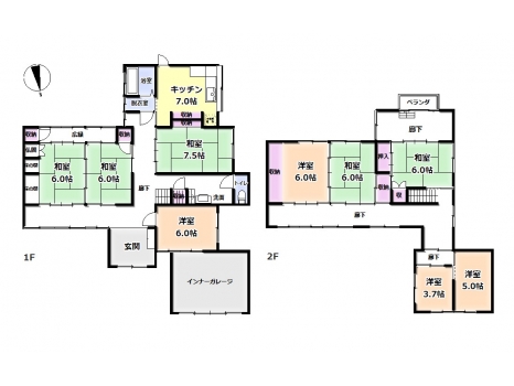 | 価格 | 4,500,000 円 | 土地面積 | 233.35 m²(70.58坪) | 床面積 | 1階137.18㎡ 2階83.39㎡ 計220.57㎡(66.72坪) |
