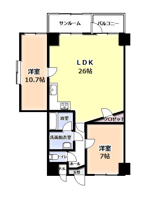 | 間取り | 2LDK | 構造 | 鉄骨・鉄筋コンクリート造 | 所在階 | 2 階 |